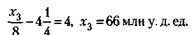 1) Условию задачи отвечает сумма кредита, равная х3 = 66 млн у. д. ед.