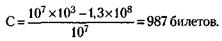 168. Для того чтобы Рв = 1 %, или 0,01, количество счастливых билетов С должно вырасти в десять раз и составить 9870. Тогда Д = 107 х 103 - 9870 х 10-7 = -88,7 х 109 руб.