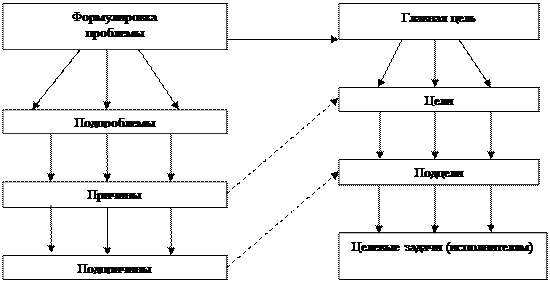 - на самом нижнем уровне «дерева целей» располагаются целевые задачи конкретным исполнителям.
