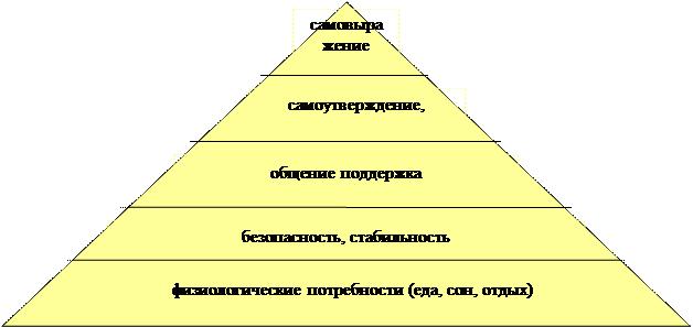 Люди постоянно испытывают потребности, которые можно разделить на группы и расположить по степени значимости в виде пирамиды потребностей: