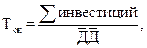 – срок окупаемости по среднему значению дисконтированного дохода;