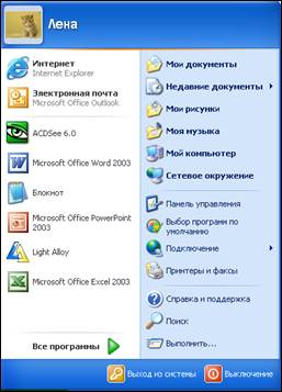 В левой части Панели задач находится кнопка, открывающая меню «Пуск», содержащее список установленных программ и ссылки на самые важные элементы управления Windows. Изменяя свойства меню, пользователь может установить его стиль (рис. 3.3).