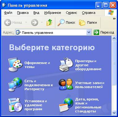 1. Вид по категориям — все элементы разделены по категориям (рис. 3.4). Каждая категория дает возможность выполнить сразу несколько операций в «пошаговом» режиме (что удобно для начинающих пользователей).