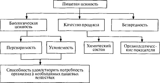 По общепринятой терминологии в понятие «пищевая ценность» входят количественное соотношение пищевых веществ в продукте и суммарная энергетическая ценность, органолептические характеристики изделия и способность веществ перевариваться и усваиваться организмом (рис. 4.1).
