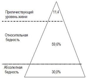 Рис. 6. Соотношение абсолютной и относительной бедности в России (конец 90-х годов ХХ века)