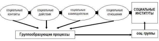 Кроме того, именно социальные взаимодействия являются основой группообразующих процессов, первым шагом в образовании социальных групп (Рис. 8).