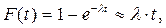 Зависимость вероятности возникновения отказа (F), вероятности безотказной работы (Р), плотности вероятности возникновения отказов, интенсивности отказов (λ) при экспоненциальном законе распределения от времени (t).