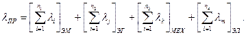 В этом выражении слагаемые в квадратных скобках представляют собой оценки интенсивностей отказов соответственно: электромеханических элементов (эм), электрогидравлических элементов (эг), механических элементов (мех), электронных устройств (эл).