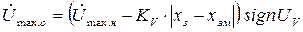 Алгоритм изменения максимальной скорости золотника гидрораспределителя, представляемый в модели по схеме на рис.5.1 напряжением