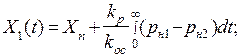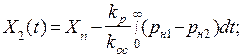 (Здесь предполагается, что коэффициенты позиционной обратной связи в каналах привода могут быть разные). В общем случае из приведенных выше соотношений можно получить выражения для оценки предполагаемых траекторий перемещения поршней гидроцилиндров каждого из каналов сервопривода Х1(t) и Х2(t) в предположении, что они механически не связаны общим штоком в следующем виде: