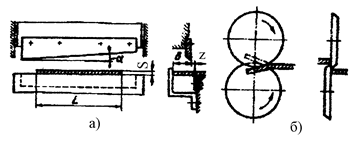 Рис. 4.15. Схема действия ножниц: а - гильотинных, б - дисковых