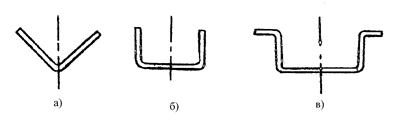 Рис. 4.18. Виды гибки: а - одноугловая; б - двуугловая; в - многоугловая.