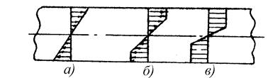 Рис. 4.21. Распределение напряжений по сечению листового материала при изгибе
