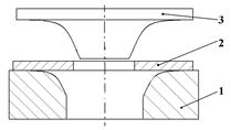 1 – матрица; 2 – заготовка; 3 – пуансон.