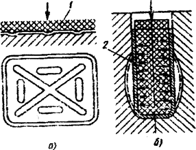 Рис. 4.25. Схема формовки ребер жесткости (а) и сосуда переменного сечения (б)