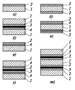 1 –основной слой; 2 – плакирующий слой; 3 – прокладка (разделительный слой); 4 – соединительный подслой.