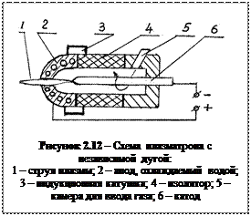 Для резки в промышленности применяется две схемы плазмообразования: 1) дуга прямого действия, возбуждаемая на обрабатываемой поверхности металла, который является анодом (+); 2) косвенная (независимая) дуга возбуждается между электродами, находящимися в плазмотроне (показана на рис. 2.12).