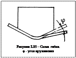 Так как при гибке в холодном состоянии в материале возникают пластические и упругие деформации, радиус гибки детали после проведения операции всегда оказывается больше радиуса инструмента. Разность между величиной угла детали после гибки и углом инструмента называют углом пружинения φ (см. рис. 2.15).