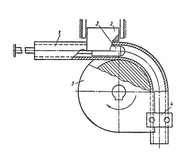 1 – труба; 2 – прижимная планка; 3 – дорн; 4 – прижим; 5 – ролик гибочный.