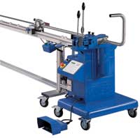 Передвижной дорновый гибочный станок. Длина дорновой опоры станка 3 / 4,5 / 6 м: ручной зажим трубы, предварительный отвод дорна. радиусы гибки труб до 140 (240) мм макс. угол гиба 180° 2 скорости гибки труб привод с косозубой прецизионной передачей электронное измерение длины и поворота электропитание 380 В вес гибочного станка без оснастки - ок. 450 кг |