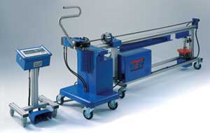 Передвижной дорновый гибочный станок. Длина дорновой опоры станка 3 / 4,5 / 6 м: ручной зажим трубы, предварительный отвод дорна. радиусы гибки труб до 140 (240) мм макс. угол гиба 180° 2 скорости гибки труб привод с косозубой прецизионной передачей электронное измерение длины и поворота электропитание 380 В вес гибочного станка без оснастки - ок. 450 кг