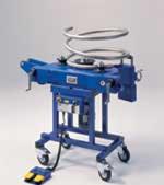 Компактный передвижной гибочный станок для мобильного и стационарного использования. Три ведущих вала. Дополнительно: подъемный блок для трехмерной гибки с шагом спирали. Раздельные индикаторы обеспечивают повторяемость радиуса и шага подъема. гибка труб D 10 - 60 мм радиусы гибки от 300 мм выходной вал D 40 / 65 мм привод с тормозной муфтой электропитание 380 В вес гибочного станка без оснастки ок. 270 кг