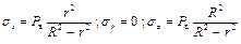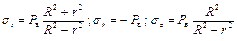 Задача по определению напряжений была решена Лямэ, и для случая, когда Р в > Р н, будут следующие значения s t, s z и s r: