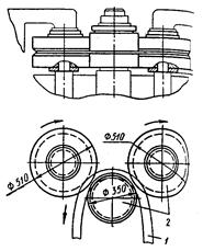 Рисунок 27.8 – Ролики с направляющими пазами: 1 — полоса; 2 — ролики