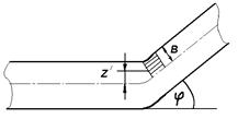 Кроме общих деформаций, могут возникать местные деформации в виде волн и выпучин. Угловая деформация b при наплыве валика на поверхность листа может быть определена по графику.
