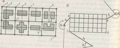 Строительную сетку выполняют в виде квадратов и прямоугольников, которые подразделяют на основные и дополнительные (рис. 3.1, а). Длина сторон основных фигур сетки 100... 200 м, а дополнительных —20... 40 м.
