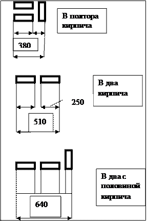 Толщину стен и поперечные размеры столбов принимают кратно половине или целому кирпичу (исключение – 1/4)