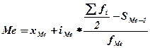 S Ме-1 – сумма накопленных частот, предшествующих медианному интервалу;
