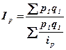 ) - представляет собой отношение стоимости продукции текущего периода к стоимости продукции в базисном периоде. Стоимость продукции – это произведение количества продукции в натуральном выражении (q) на цену (p).