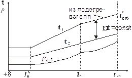 на графике температур проводят горизонтальную линию. Сплошная линия t 1 есть график температуры на выходе из основного подогревателя. При t н > t нa отпуск тепла обеспечивается только работой основного подогревателя. При t н < t нa в работу