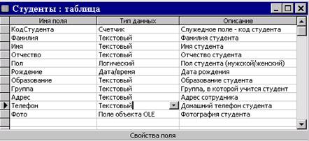 Закройте Конструктор и сохраните таблицу под именем Студенты