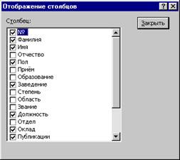 Сокрытие столбцов