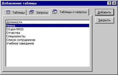 В диалоговом окне Добавление таблицы откройте вкладку Таблицы и запросы