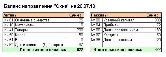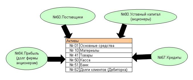 В качестве примера, группировка активов и пассивов по их экономическому смыслу выглядит так: