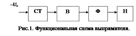 Функциональная схема выпрямителя показана на рис.1 и включает в себя следующие блоки: СТ – согласующий силовой трансформатор, В – неуправляемый выпрямитель, Ф – сглаживающий фильтр, Н – нагрузка.