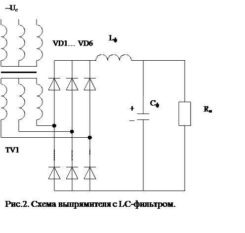 2) Одним из самых распространенных сглаживающих фильтров является индуктивно-емкостной (Г-образный) фильтр. Для данного вида фильтра справедливо следующее выражение: