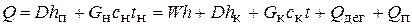 Пренебрегая потерями теплоты и теплотой дегидратации, получаем: