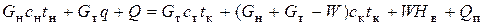 где с н, с к, с т, кДж/(кг·К)- теплоемкость соответственно начального, маточного раствора и кристаллов; t н, t к, оС- температуры соответственно начального и маточного растворов; q – теплота кристаллизации, кДж/кг; Q - приход теплоты с теплоносителем, Вт; Q п - потери теплоты, Вт; Н в - энтальпия вторичных паров, Дж/кг.
