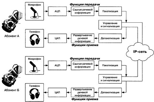 Для проведения телефонных разговоров друг с другом абоненты А и Б должны иметь доступ к Интернет или к другой сети с протоколом IP. Рассмотрим возможный алгоритм организации связи между этими абонентами.