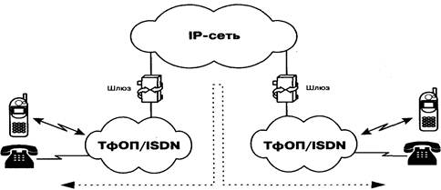 Рис. 1.4 – Соединение абонентов ТфОП через транзитную IP-сеть по сценарию "телефон-телефон"