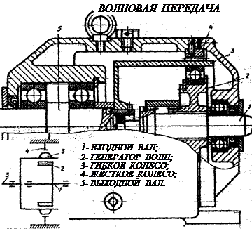 Идея волновых передач заключается в наличии нескольких пар зацепления, которые ещё и перемещаются по окружности, за счёт чего достигается огромное передаточное отношение (обычно U60 ¸ 300, известны конструкции с U > 1000). И это в одной ступени!