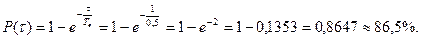 Пример 1. В период предполетной подготовки обнаружен отказ системы кондиционирования в салоне самолета. Характеру отказа соответствует среднее время восстановления 0,5 часа. До объявления посадки на самолет остается 1 час. Какова вероятность восстановления системы кондиционирования к требуемому времени?