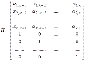 Проверочная матрица имеет размерность n×r. Первые k строк проверочной матрицы представляют собой совокупность коэффициентов αli, остальные r строк – это единичная матрица размером r×r.