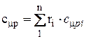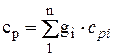 Теплоемкость смесей идеальных газов. Если смесь газов задана массовыми долями, то ее массовая теплоемкость с определяется как сумма произведений массовых долей на массовую теплоемкость каждого компонента, т. е.