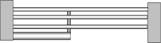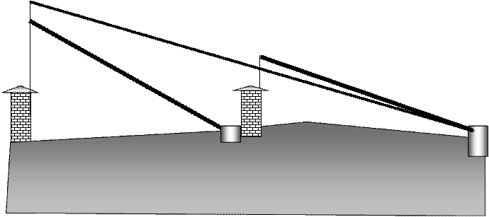 Если варианты 1 и 2 неприемлемы по каким-либо причинам, тогда строят дополнительную насосную станцию рядом с существующей (рис.3.6). В случае, если напор насосов или давление в водоводах оказывается больше допустимого при пропуске увеличенного расхода, рассматривают вариант строительства промежуточной насосной станции (ПЭНС). Здесь можно обойтись без дополнительных водоводов, однако, замена насосов НС-II, как правило, потребуется. Преимуществом этого варианта является более простое обеспечение непрерывной подачи воды в город. Однако этот вариант дороже первых двух. Место строительства ПЭНС уточняют путем построения пьезометрической линии (рис.3.7).