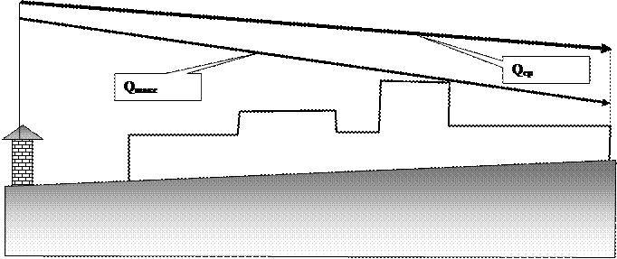 При питании регулирующего (при узле регулирования) РЧВ через сеть необходимо обеспечить минимальный потребный Нсв в районе расположения этого РЧВ.